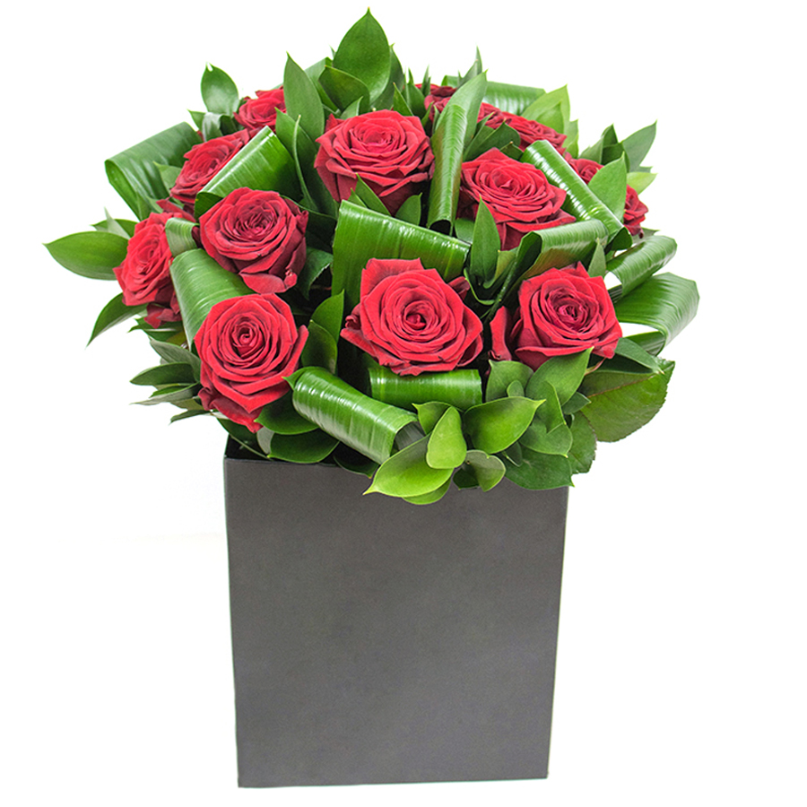 Sophisticated Red Rose & Aspidistra Floral Arrangement